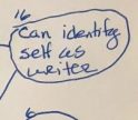 - Can identify self as writer