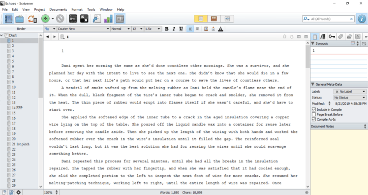 After wrapping up my five-book Burnt Mountain fantasy series, I decided to tweak my writing process to start a science fiction trilogy. I switched from Word to Scrivener and gained a wealth of organization tools. (Dave Chesson discusses benefits of Scrivener here.)
